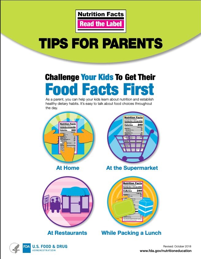 • Enséñales a leer las etiquetas nutricionales de los alimentos y bebidas.