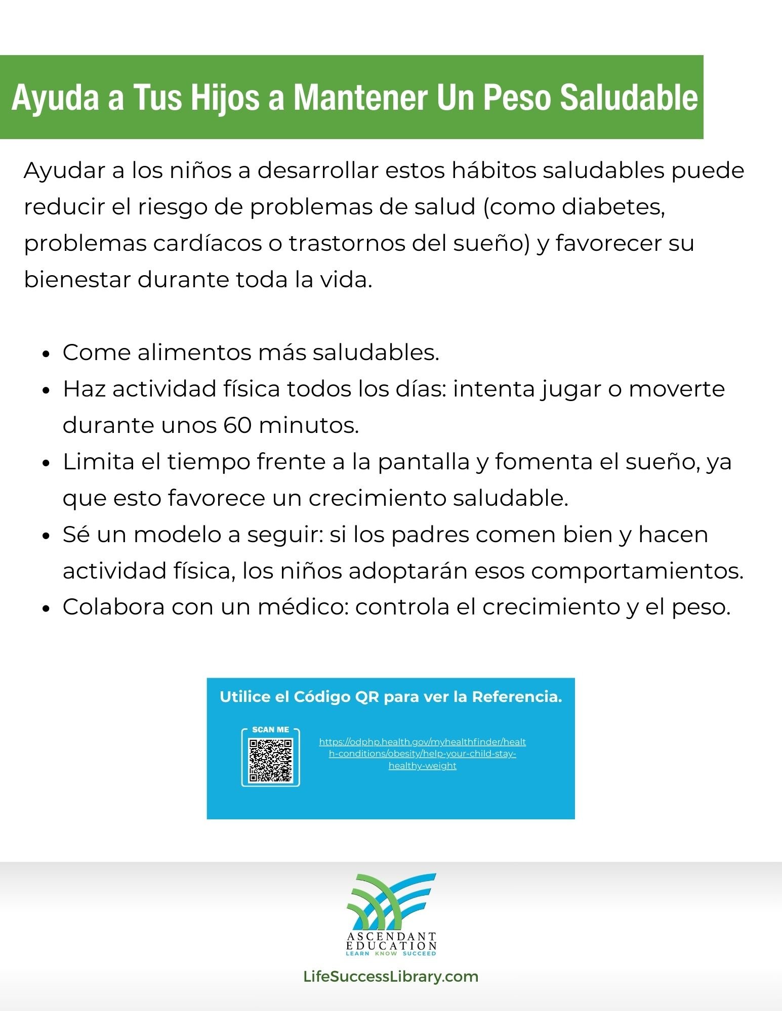 Ayudar a los niños a desarrollar estos hábitos saludables puede reducir el riesgo de problemas de salud (como diabetes, problemas cardíacos o trastornos del sueño) y favorecer su bienestar durante toda la vida.