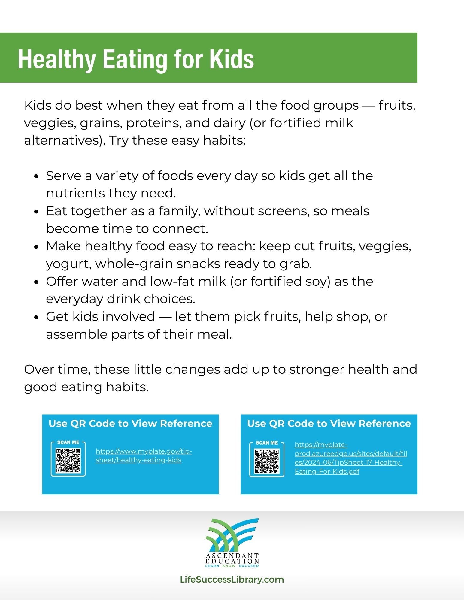 Over time, these little changes add up to stronger health and good eating habits.