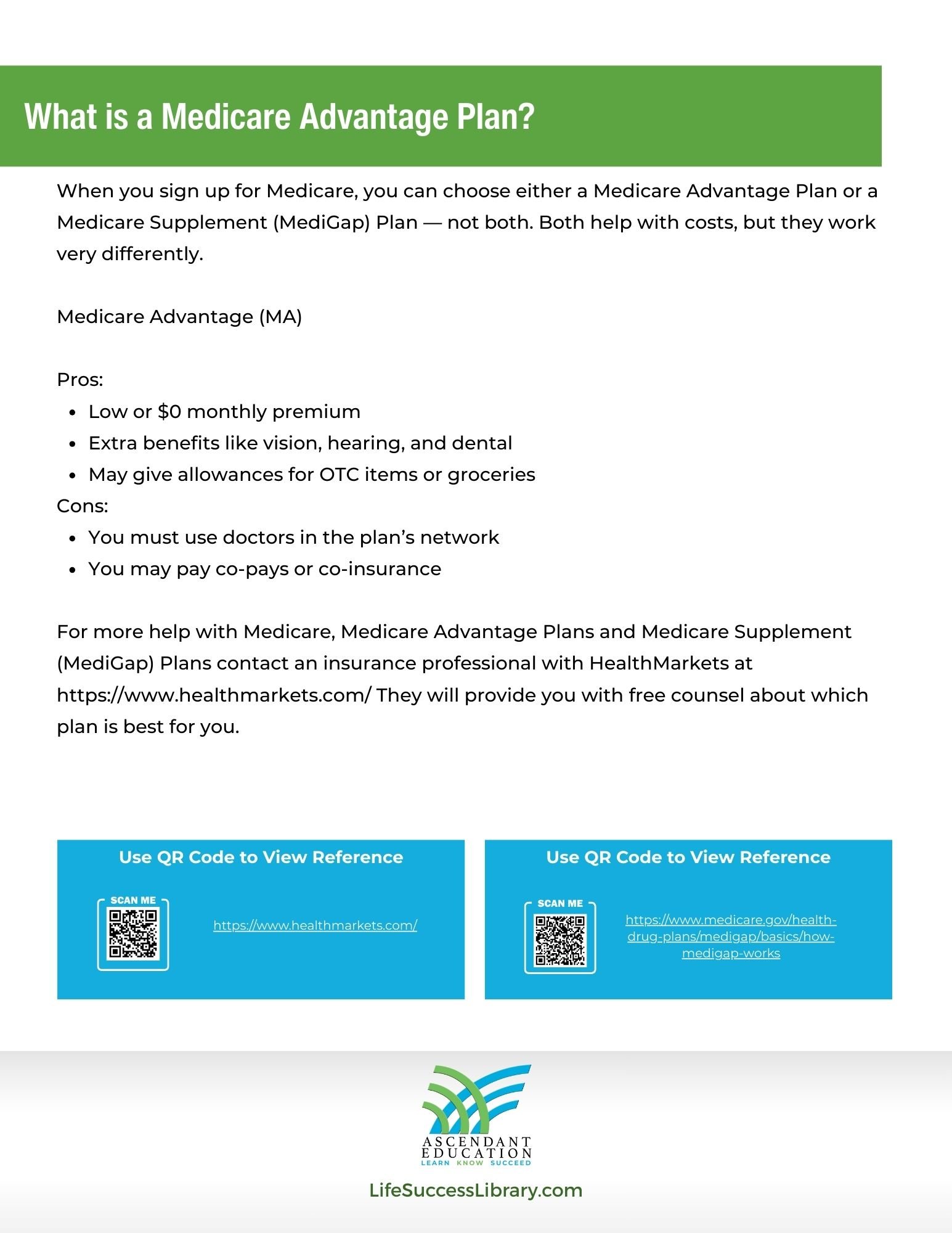 For more help with Medicare, Medicare Advantage Plans and Medicare Supplement (MediGap) Plans contact an insurance professional with HealthMarkets at https://www.healthmarkets.com/ They will provide you with free counsel about which plan is best for you.
