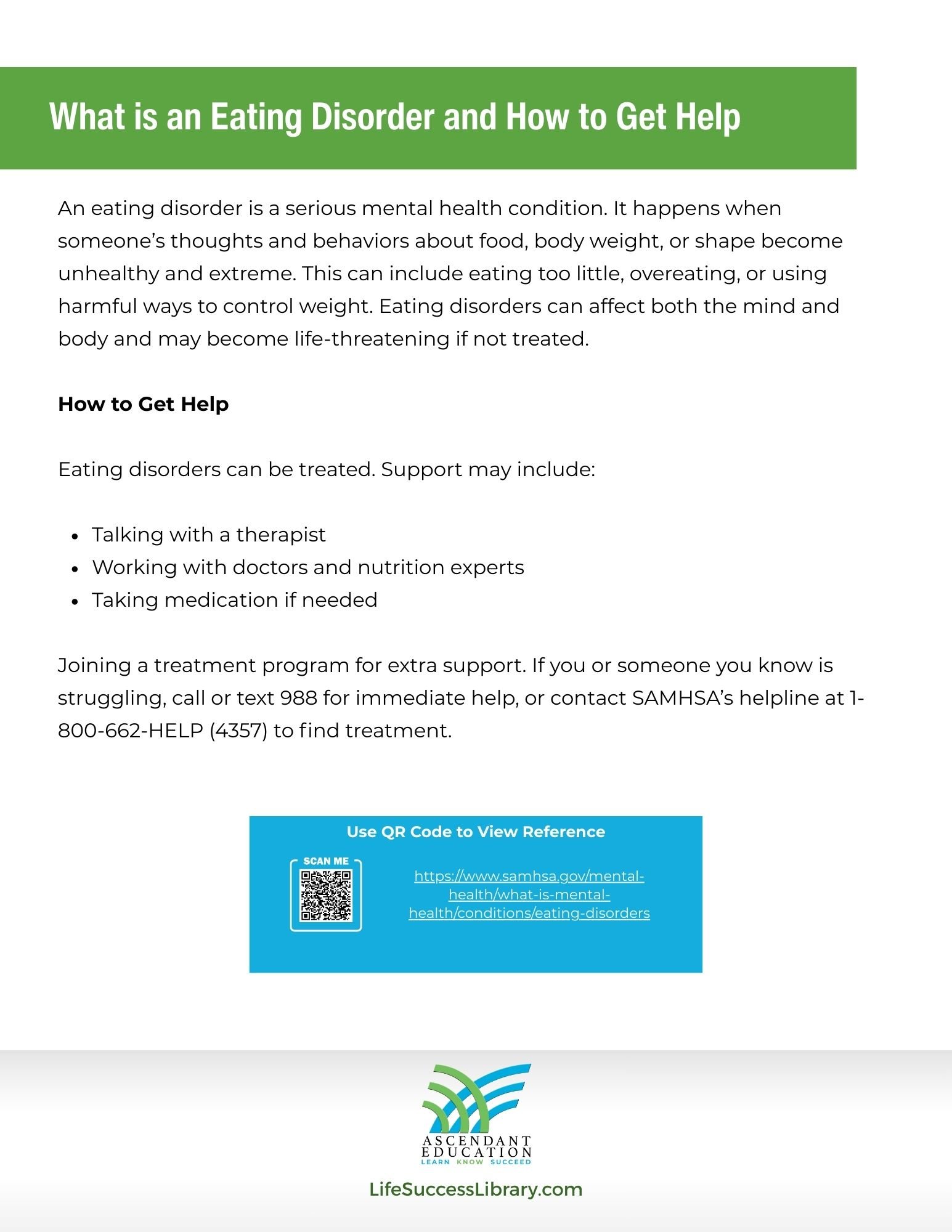 An eating disorder is a serious mental health condition. It happens when someone’s thoughts and behaviors about food, body weight, or shape become unhealthy and extreme. This can include eating too little, overeating, or using harmful ways to control weight. Eating disorders can affect both the mind and body and may become life-threatening if not treated.